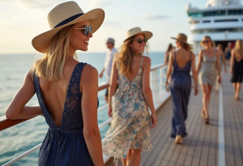 - Tenue décontractée : Idéale pour les excursions ou les moments de détente à bord, cette tenue mise sur le confort tout en gardant une touche d’élégance.